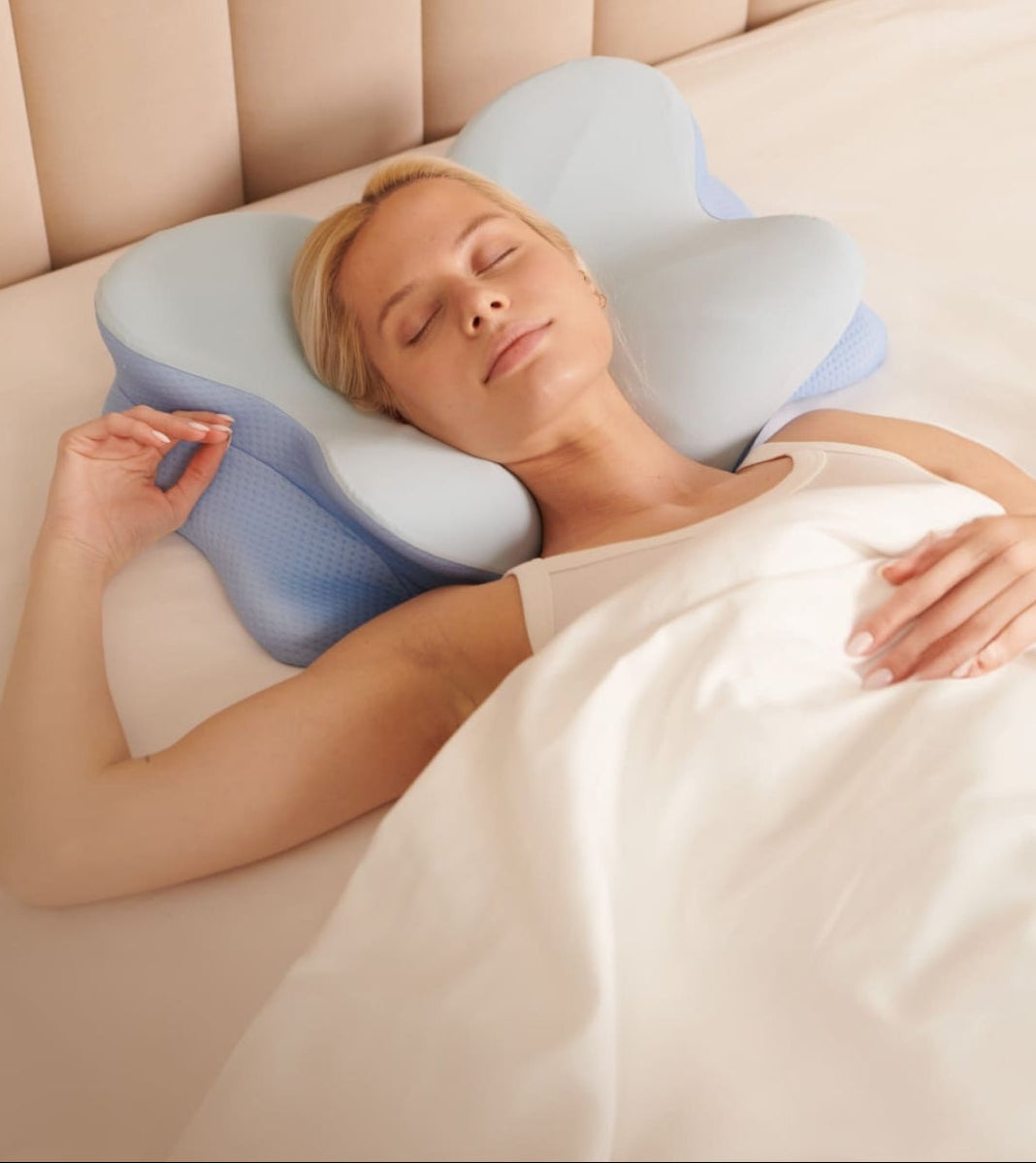 The ergonomic neck design keeps your head and neck in natural alignment. This helps reduce tension, stiffness, and morning discomfort.